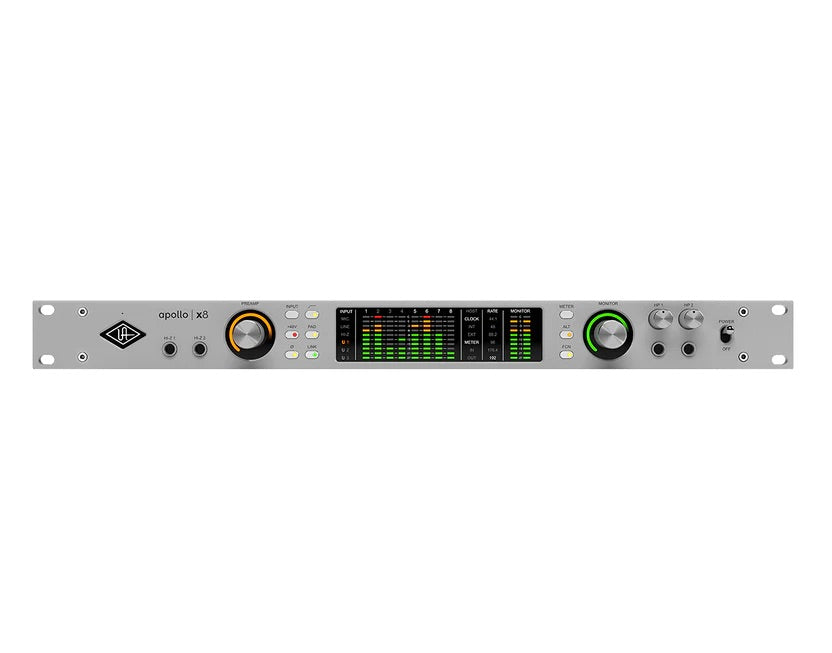 Our most advanced Apollo x8 is here. For creators and producers running bigger projects who need highest-resolution audio conversion, four Unison™ mic preamps, and realtime UAD processing — which lets you record through plug-ins from Auto-Tune, Neve, API, Manley, and more without latency — Apollo x8 puts legendary UA sound and craftsmanship right in your rack.