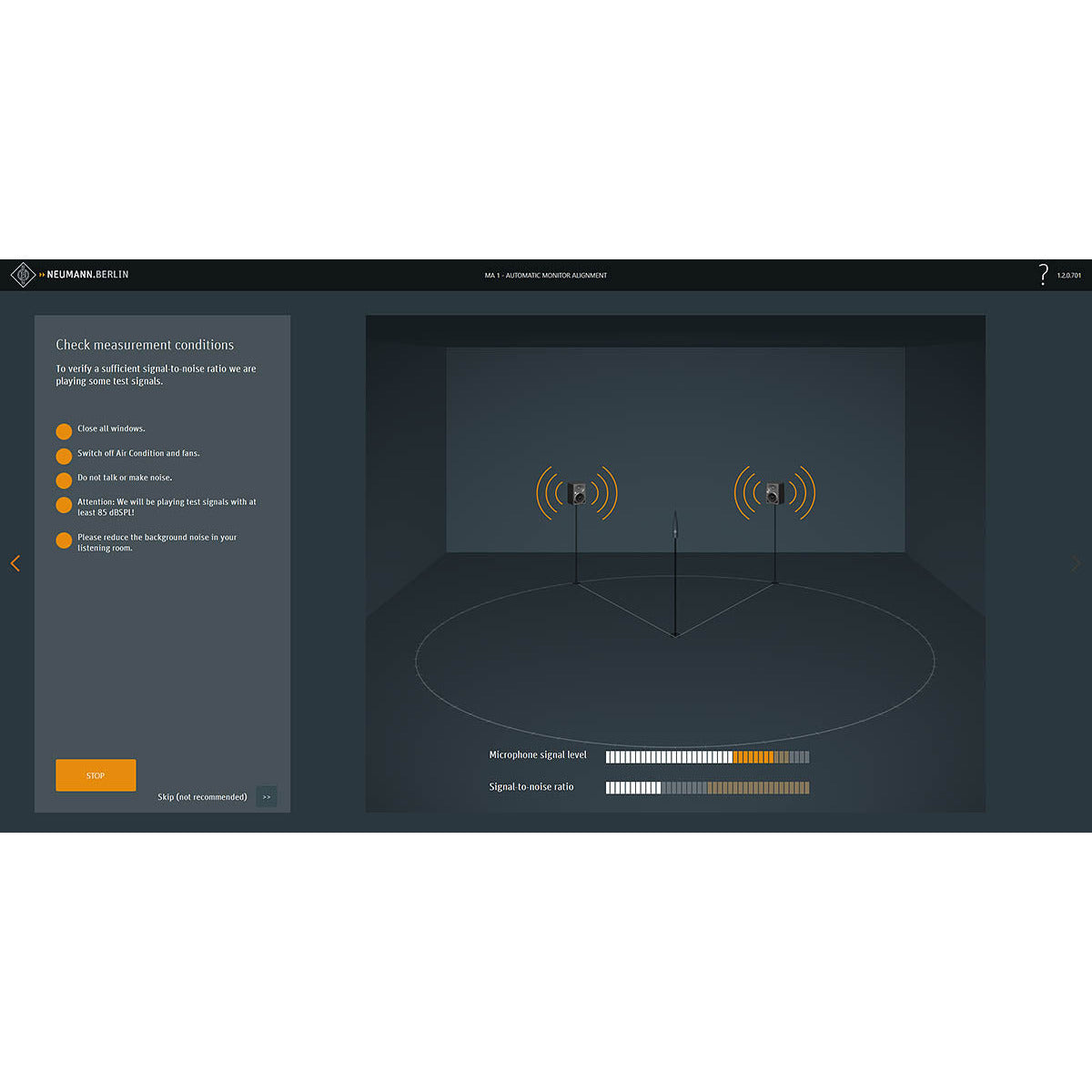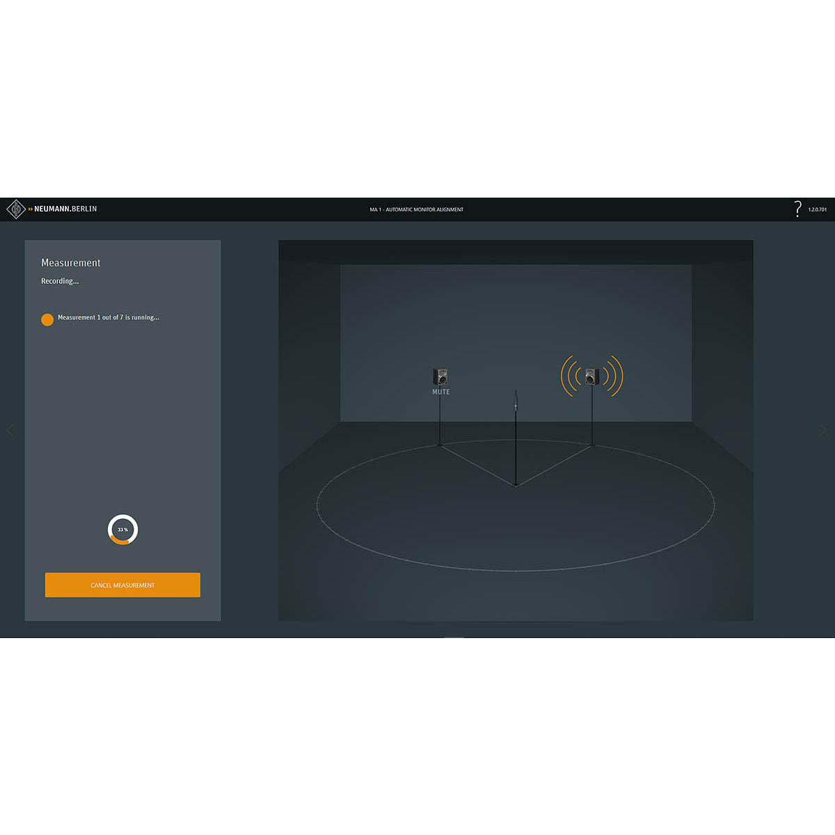 Neumann’s Automatic Monitor Alignment MA 1 ensures the best possible sound quality in any room – from home studios to professional control rooms. Using the individually calibrated measurement microphone your acoustic environment is analyzed in a guided process. Advanced calibration algorithms, jointly developed with the world's leading institute in audio processing, Fraunhofer IIS, guarantee an optimally adapted amplitude and phase correction for exact and reliable monitoring.